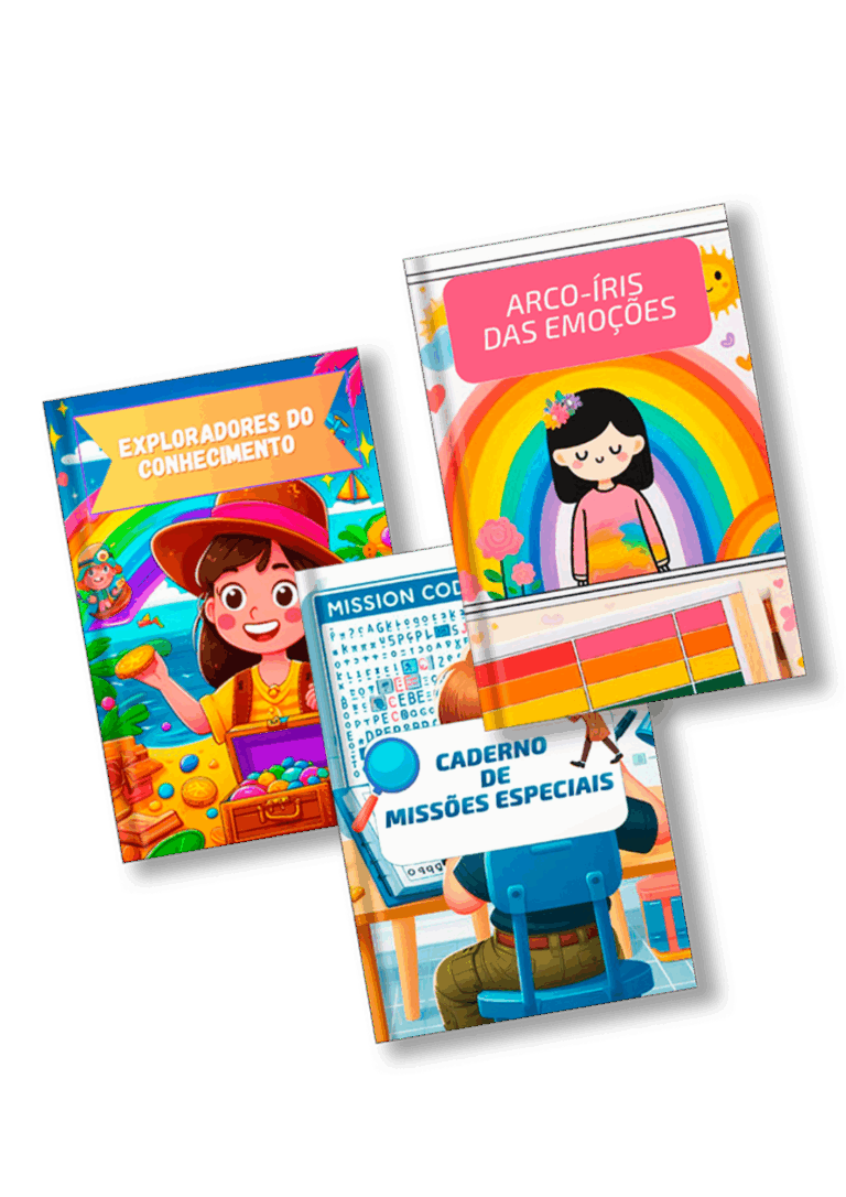 • Caderno de Missões Especiais: trabalha a identificação e expressão das emoções, desenvolvendo inteligência emocional.