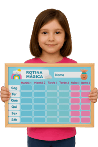 É algo simples, quadros visuais que falam a língua da criança, ajudam a entender o que vem depois e transformam o caos em calma e conexão.